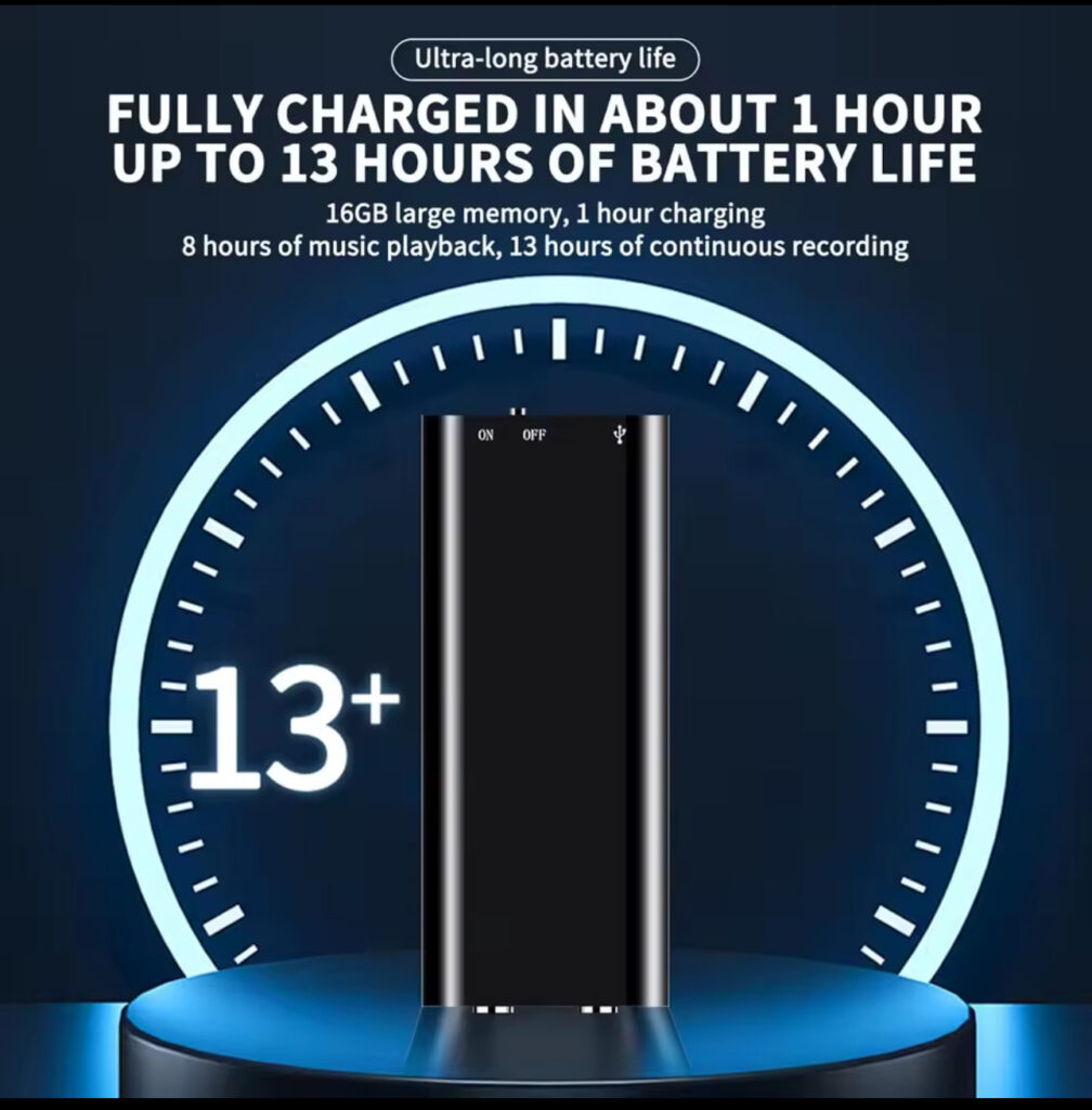 The Ultra Mini HD Voice Recording Device is equipped with a long-lasting battery that supports hours of continuous recording. Whether you’re in long meetings, lectures, or interviews, you can rely on it to capture every detail without interruption. Spend less time charging and more time recording.